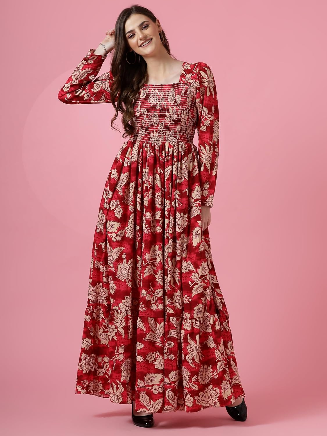 Sheetal Associates Crepe Women’s Mix Floral Printed Grown with Regular Sleeves Full Lenth and Square Neck | Beach Tipe Dress