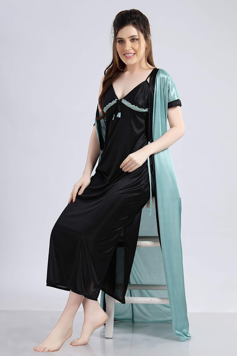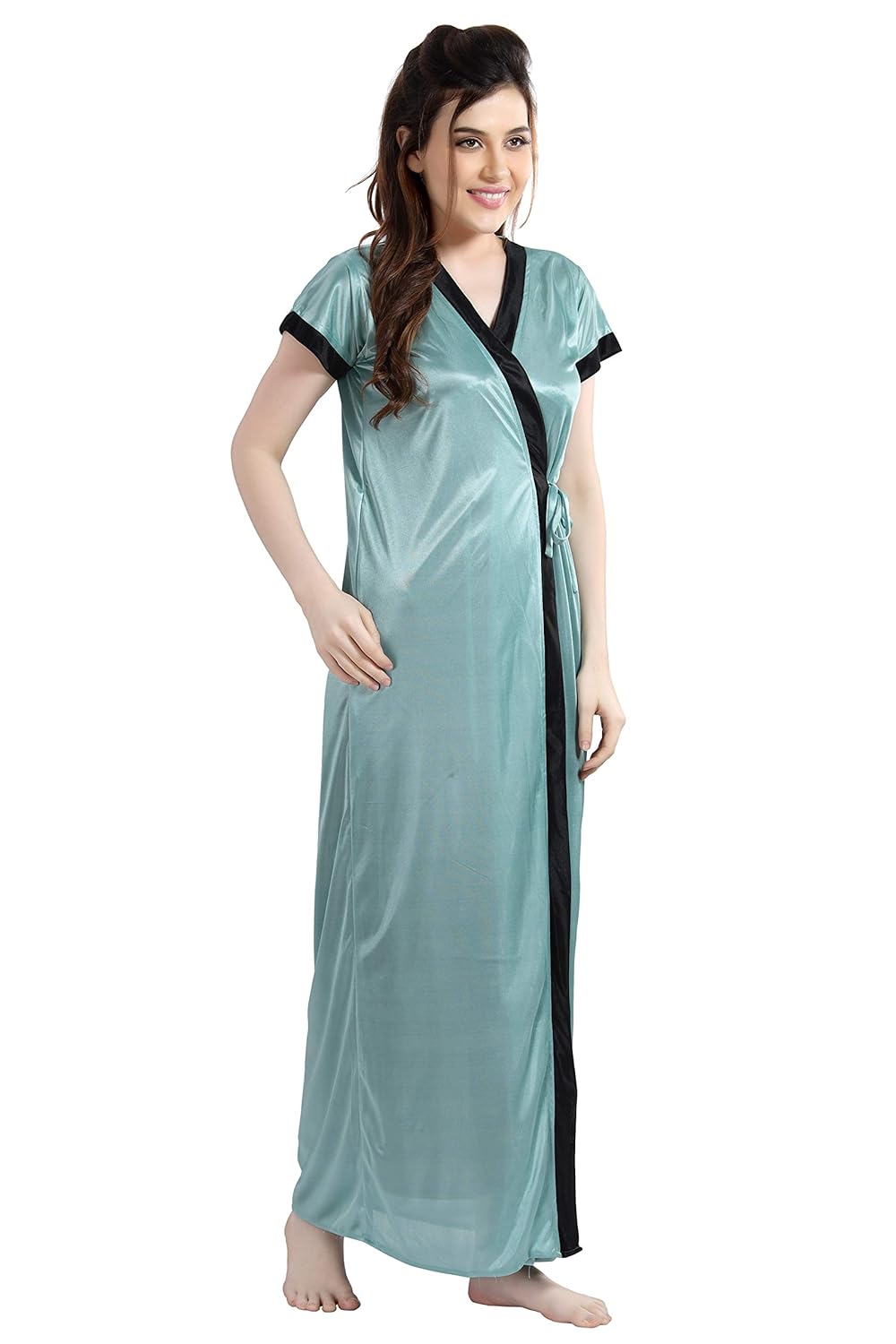 AV2 Women’s Satin Solid Knee Length Nighty with Robe