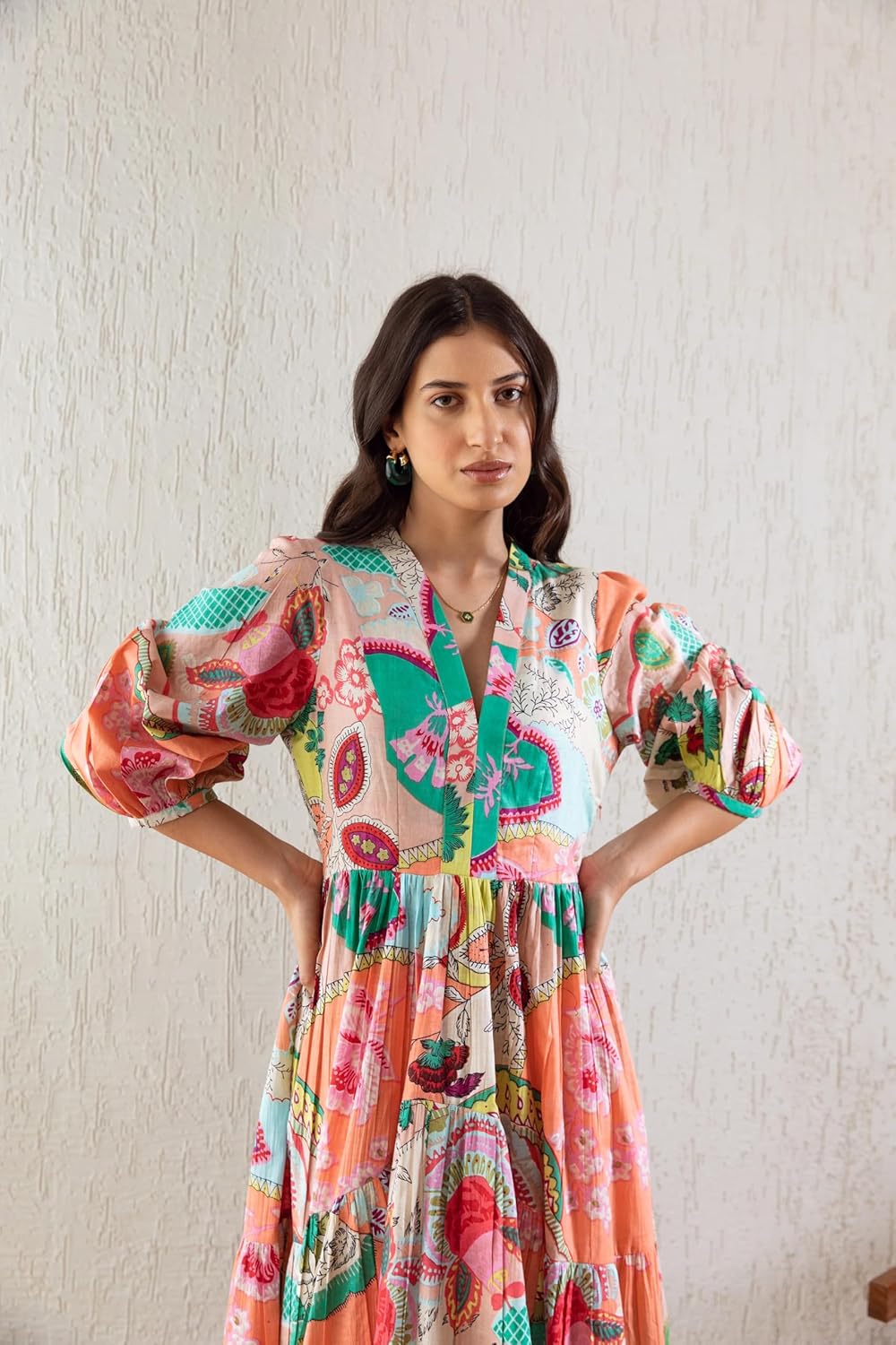 GRECIILOOKS Women's Printed Boho Maxi Dress | Long Flared Style with Full or Puff Sleeves | Ethnic Pattern Gown for Festive, Holiday & Everyday Wear